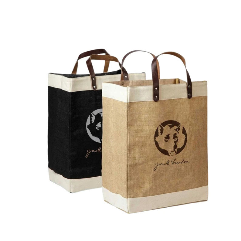 Vente en gros Naturel Écologique Réutilisable Laminage Intérieur Lin Laminé Hessian Plage Épicerie Jute Jute Sac Fourre-Tout