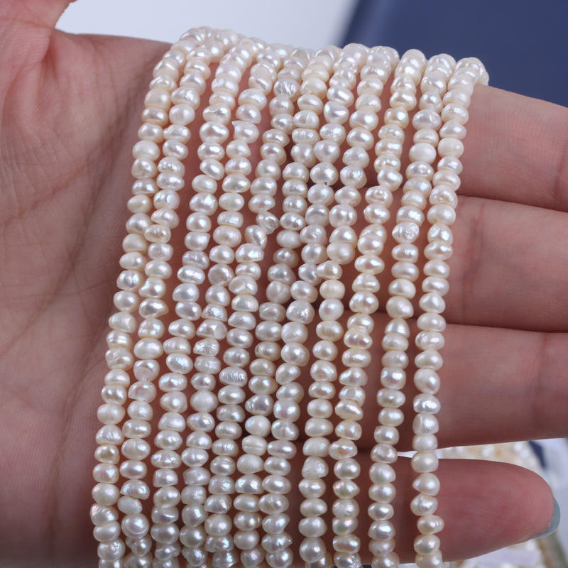 Wholesale Natural Freshwater 3-4mm Double-Sided Glossy Baroque Beads DIY Semi-Finished Necklace Accessory Side Hole Loose Pearls