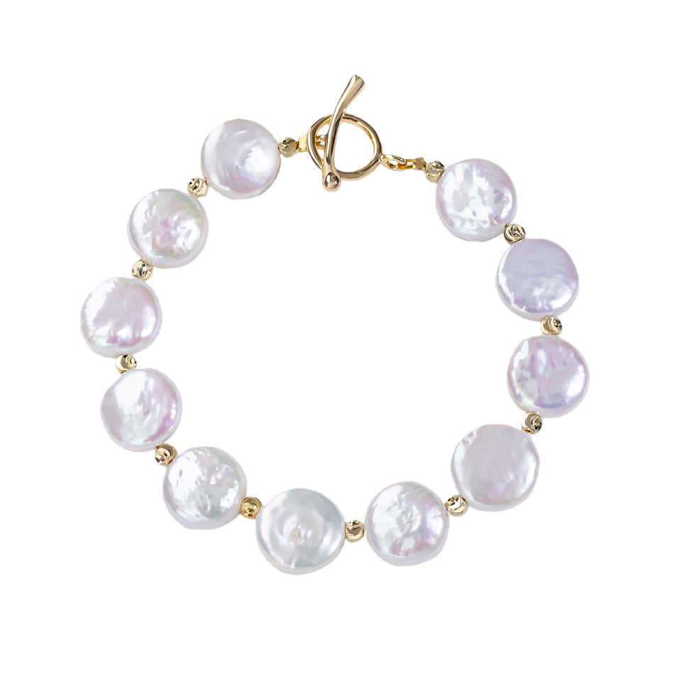Wholesale Natural Freshwater Baroque Pearl Bracelet Button Beaded Cross-Border Style Jewelry