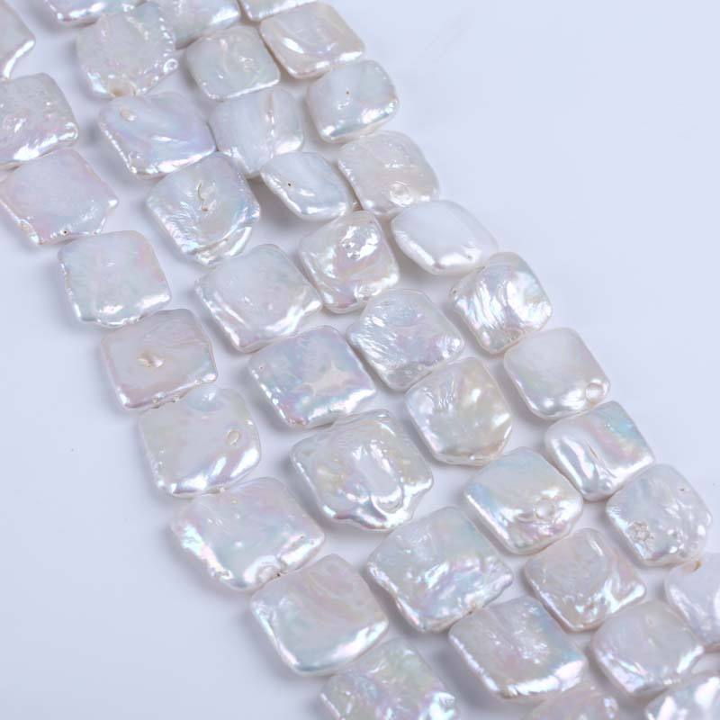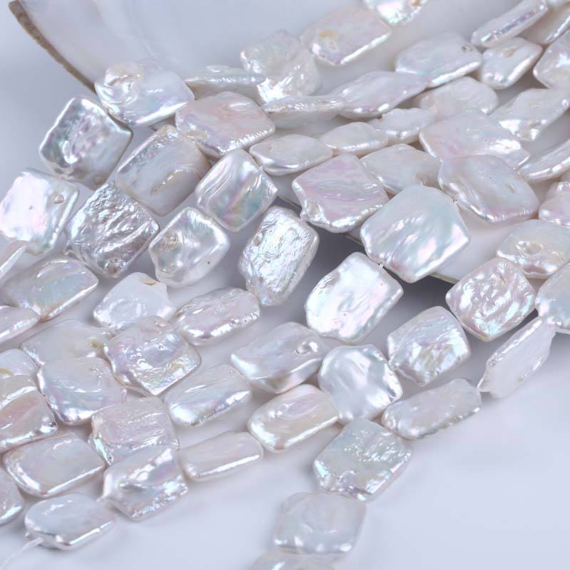 Wholesale Natural Freshwater Baroque Shaped White Pearl Necklace 16-22mm Rectangular Block Semi-Finished Bead Loose Color Pear