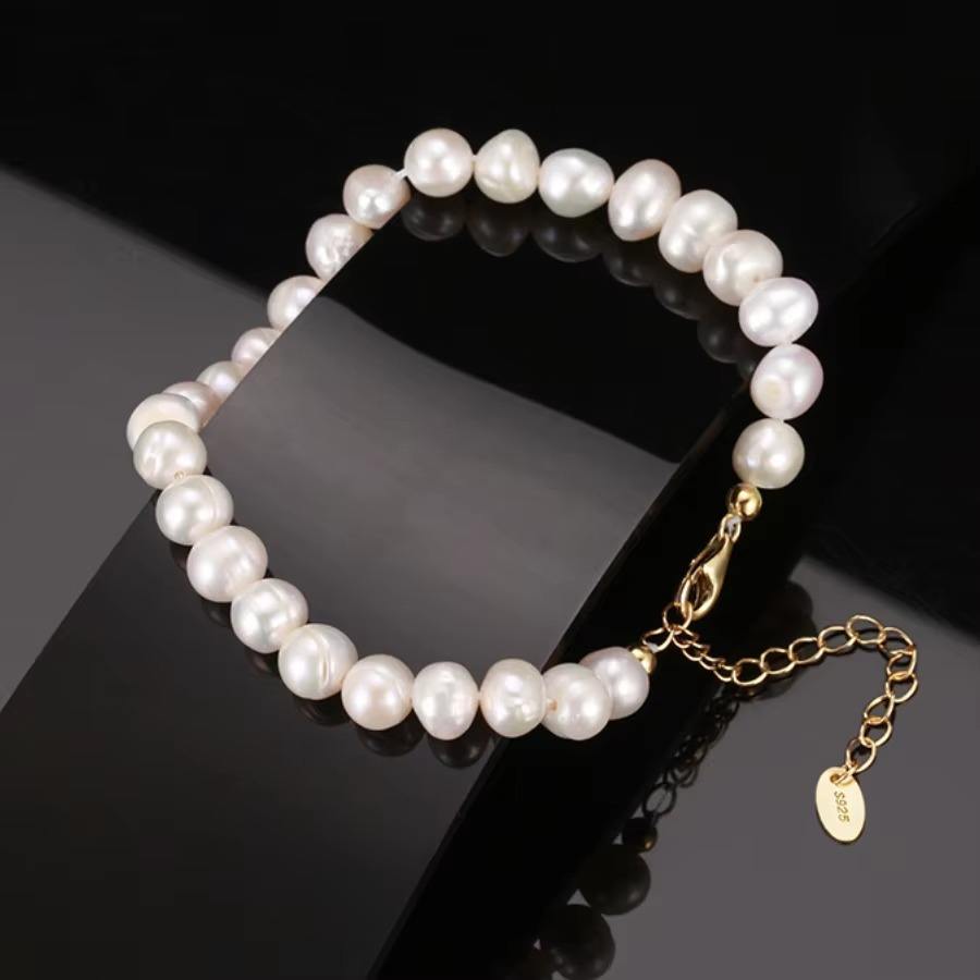 Wholesale Natural Freshwater Pearl Bracelet Sterling Silver 925 Gold Plated Jewelry Pearl Bracelet