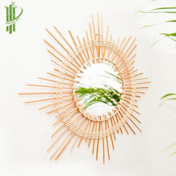Vente en gros de rotin de miroir de décoration de mur fait main naturel avec la conception complexe de fleur directement de l'usine