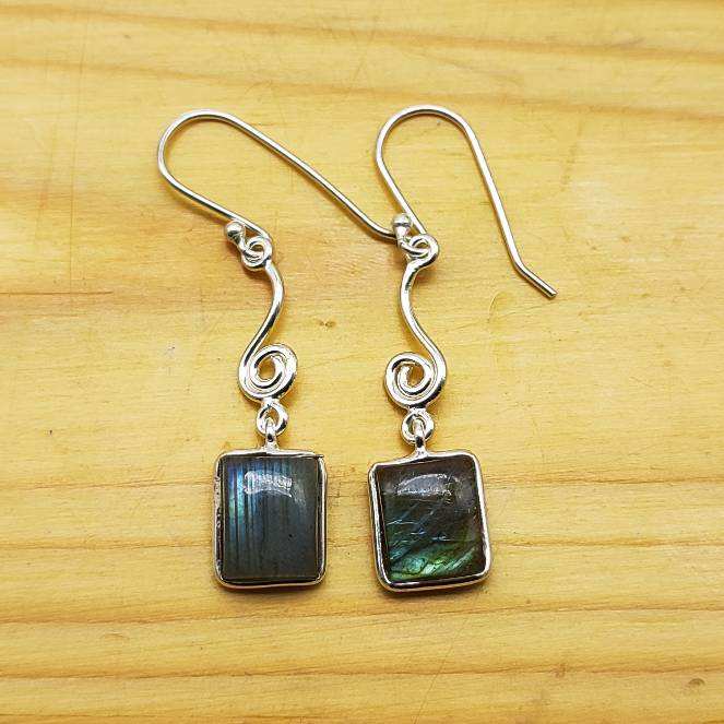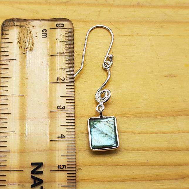 Vente en gros de boucles d'oreilles pendantes en forme de rectangle de labradorite naturelle en argent sterling 925 pour les fêtes