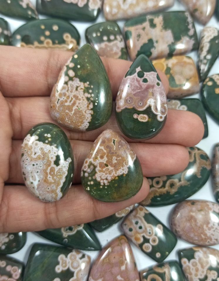 Vente en gros de cabochons en jaspe océanique naturel, pierres précieuses de guérison, pierres précieuses en vrac, cabochons en jaspe, bijoux en argent