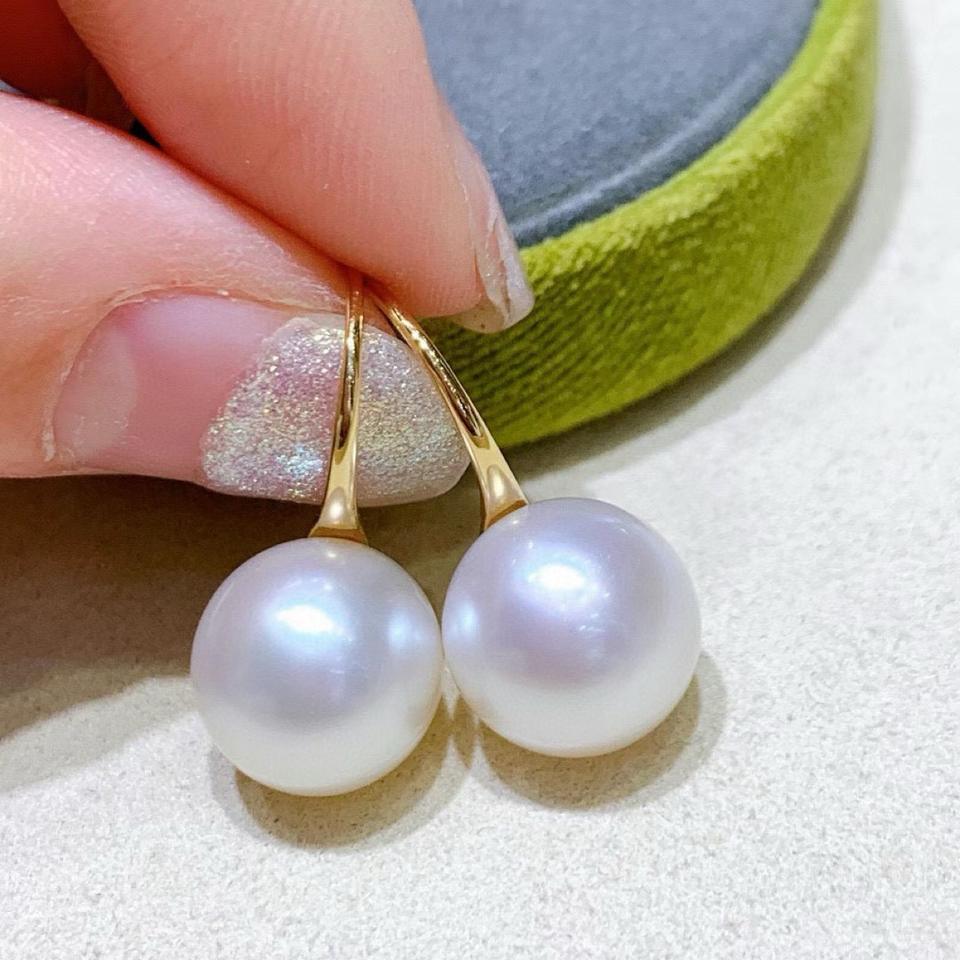 Wholesale Natural Pearl S925 Pure Silver Earrings 8.5-9mm Round Flawless Turquoise Zircon with Gift Box