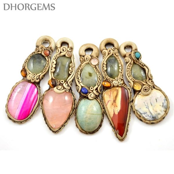 Collier Pendentif Classique en Pierre d'Argile Polymère Naturelle en Gros, Breloques Mixtes en Cristal et Pierres Précieuses pour Mariage