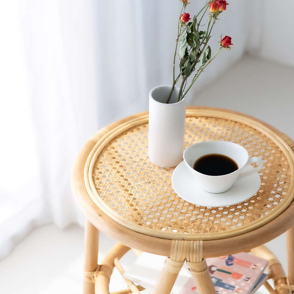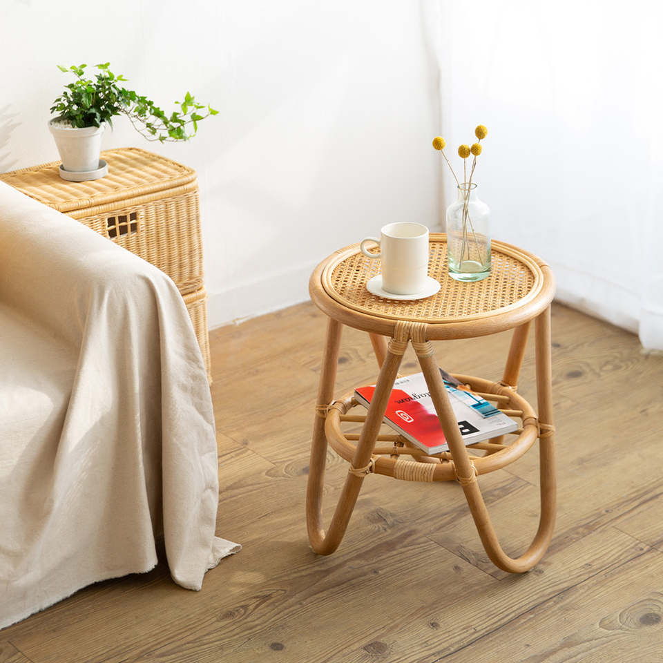 Table en rotin naturel en gros, table d'appoint en rotin tressé, table basse artisanale, adaptée à la décoration du salon
