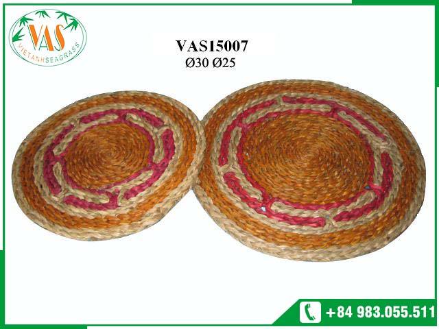 Vente en gros de napperons tissés ronds en paille de rotin de jacinthe d'eau naturelle de carex pour la décoration intérieure