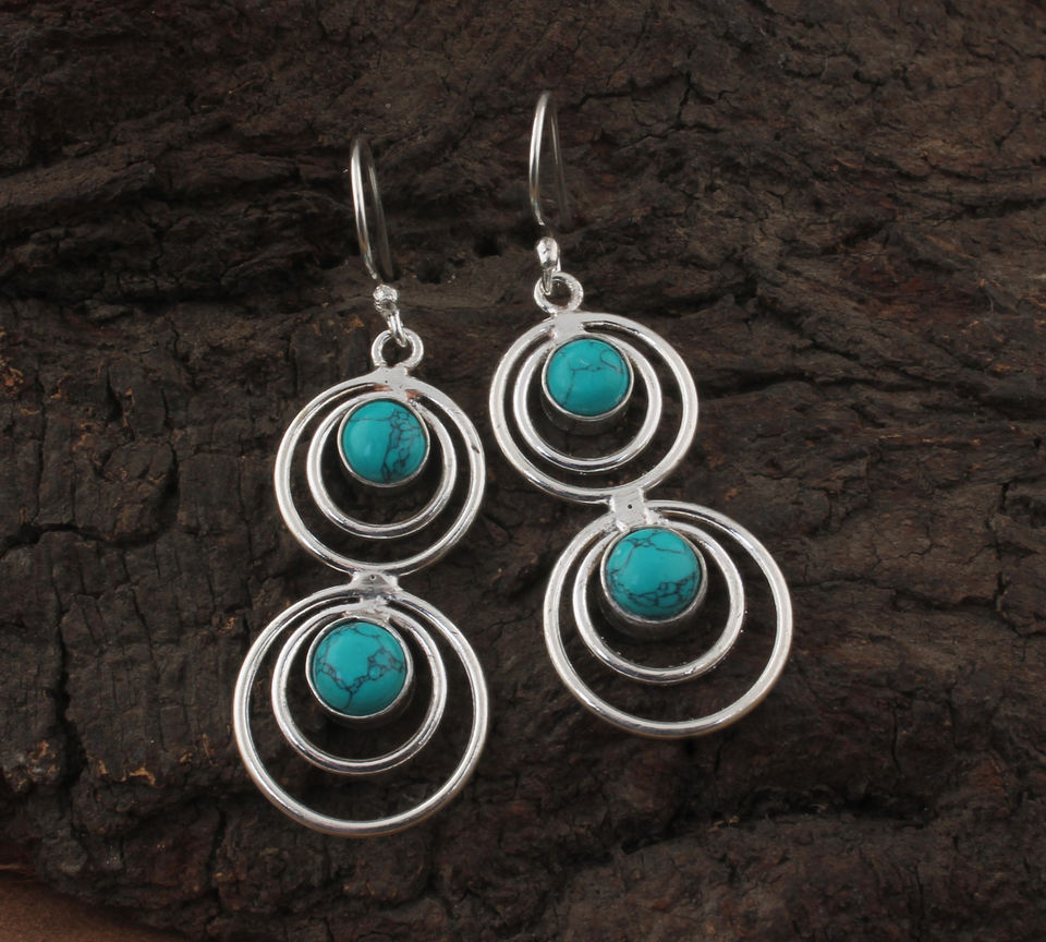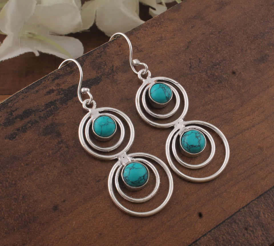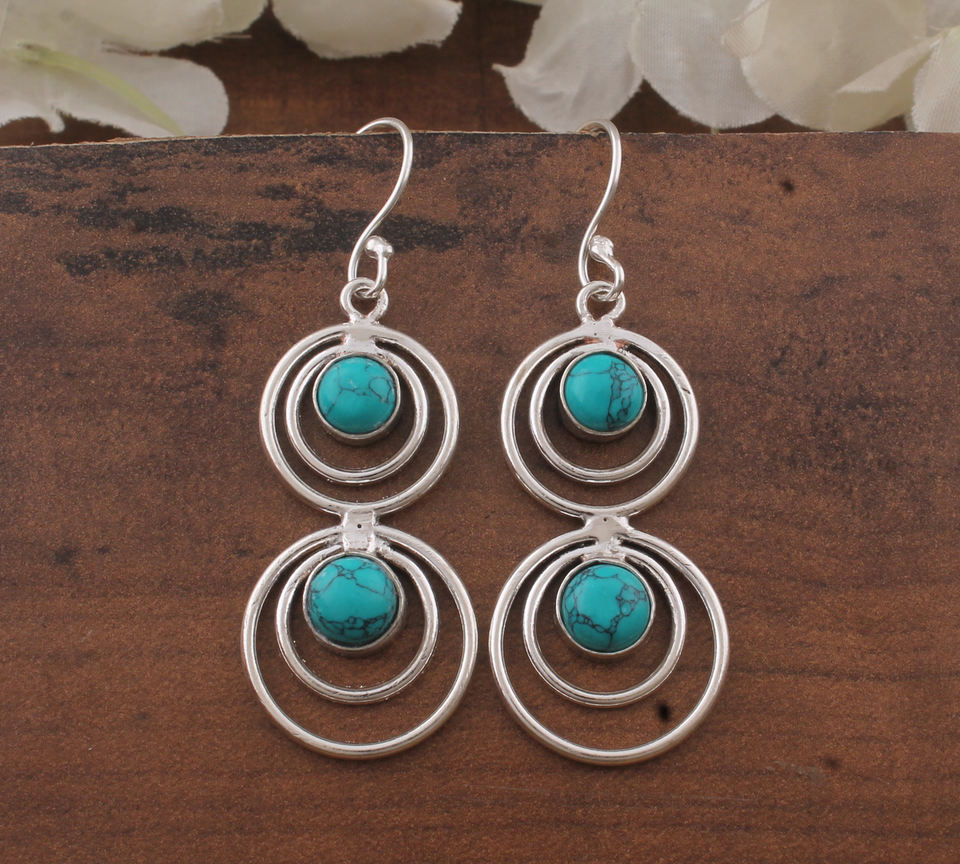 Boucles d'oreilles pendantes en turquoise naturelle vintage, deux pierres, en argent sterling 925 plaqué or rose, fournisseur de cadeaux pour mariage, vente en gros