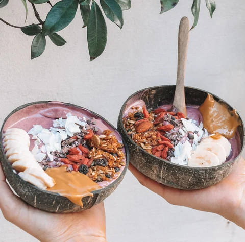 Ensemble de bols en coquille de noix de coco végétalien naturel en gros avec logo gravé jetable cuillère pour le camping fabriqué au Vietnam