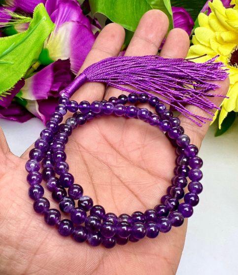 Vente en gros Cristal naturel Améthyste Jap Mala /108 perle mala: pierre de cristal de guérison: reiki pierre de guérison: pierre précieuse Jap mala