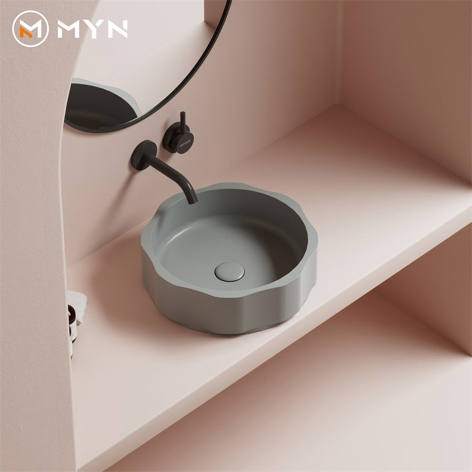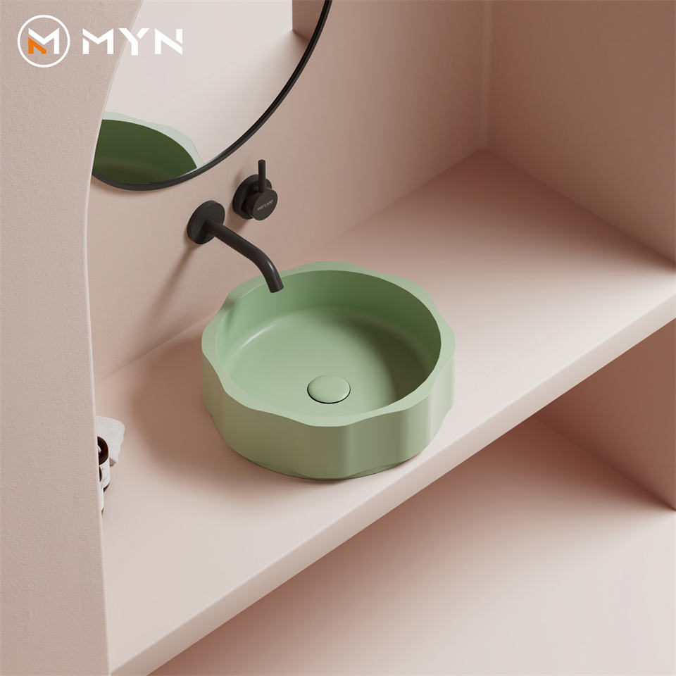 Vente en gros NetFlix eBay tendance ronde couleur moderne de Macaron blanc salle de bains Surface solide évier en pierre artificielle