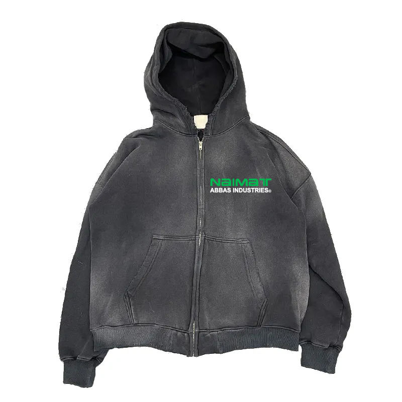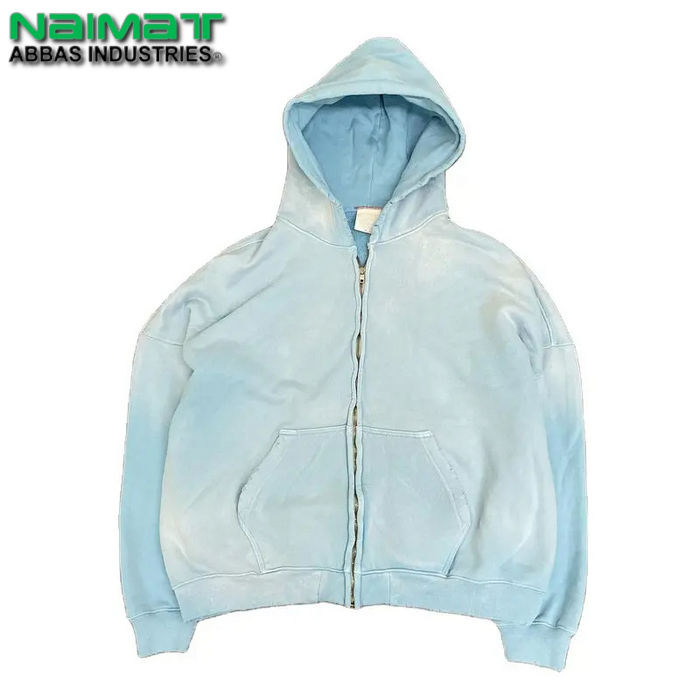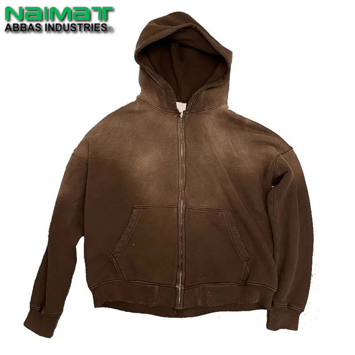 Vente en gros nouveauté Sweats à capuche surdimensionnés personnalisés en éponge française avec fermeture à glissière lavage à l'acide délavé au soleil pour l'hiver