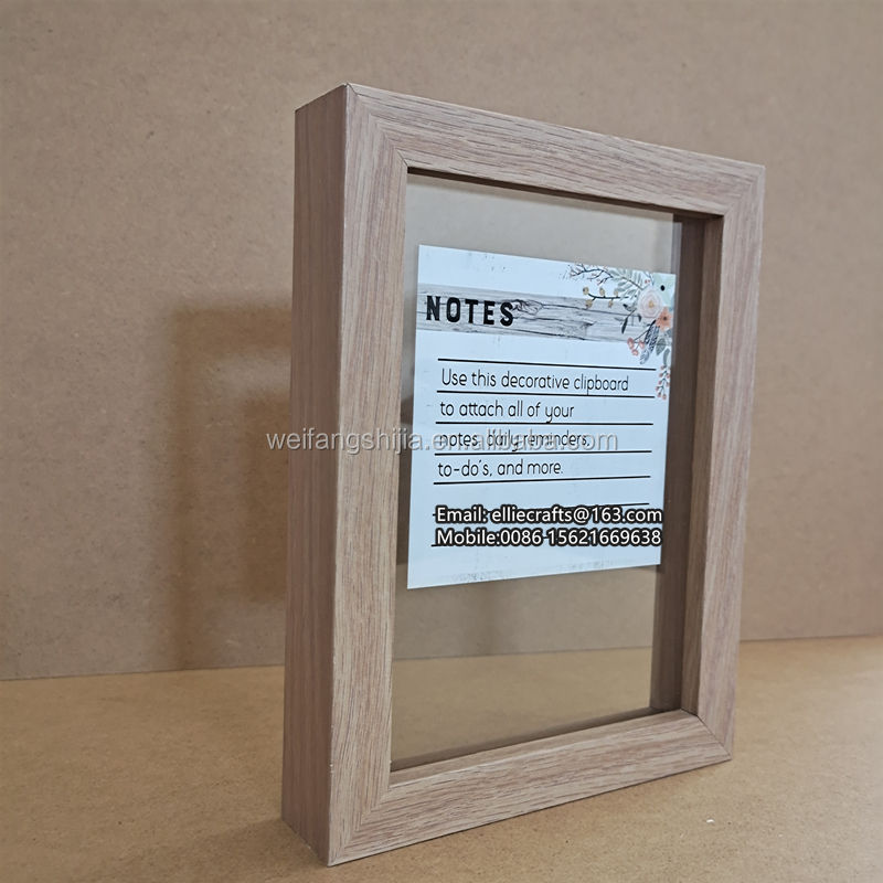 White paper corner, shrinking wrap, inner box, master carton or customized packaging for Top quality standing oak wood photo frame transparent double glass view MDF wooden floating photo picture frame bulk