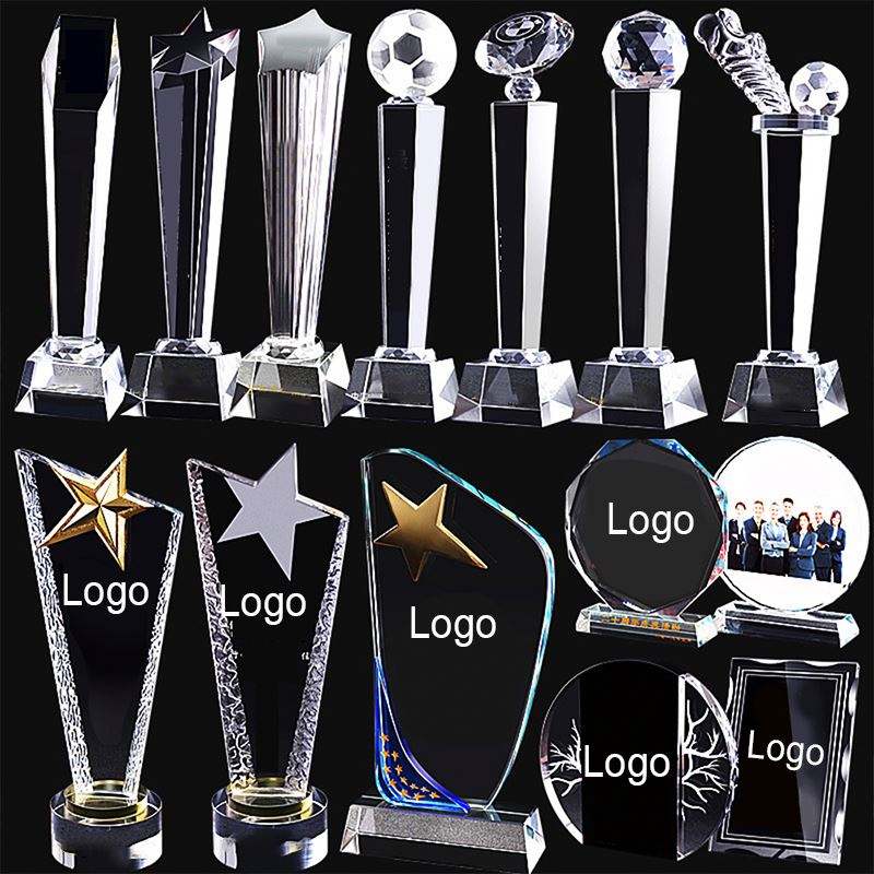 Vente en gros de trophée de cristal en métal nouveau design trophée de cristal en métal doré antique personnalisé