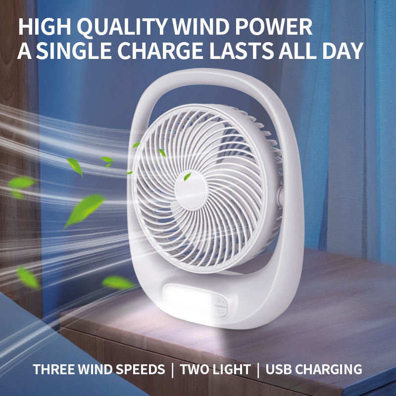 Vente en gros d'un nouveau design mini ventilateurs de table rechargeables portables réglables électriques à batterie rotative avec veilleuse