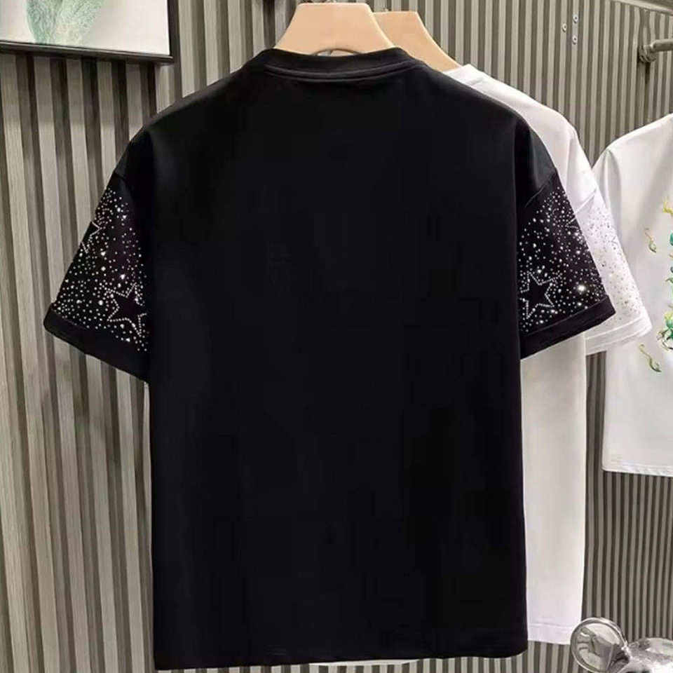 T-shirts en strass pour femmes, nouvelle collection, style streetwear, design personnalisé imprimé, t-shirts à col contrastant en strass.