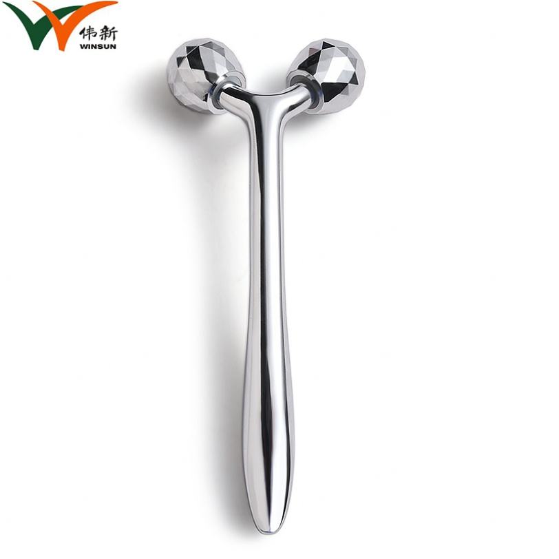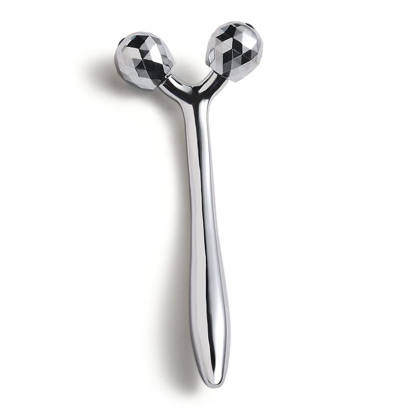 Outil de massage en métal argenté scintillant, double roulement à 360° en forme de Y, nouveau design, vente en gros