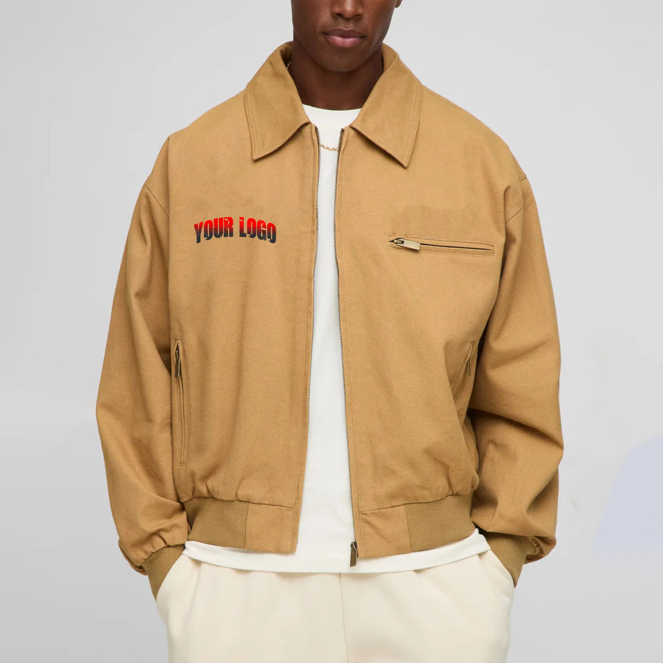Vente en gros Nouveau design Blouson aviateur à fermeture éclair Coupe ample Couleur unie Logo personnalisé Streetwear Col rabattu Veste universitaire pour homme