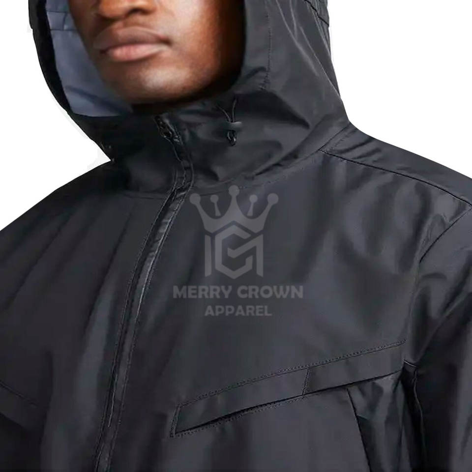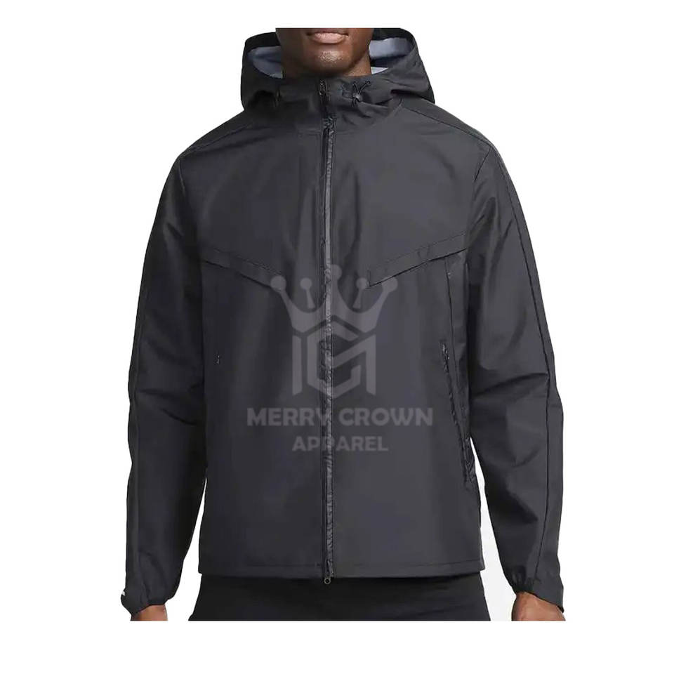Veste d'entraînement légère et imperméable en polyester pour homme, personnalisable, avec capuche, col montant, logo frontal et fermeture éclair – Nouvelle collection hiver en gros