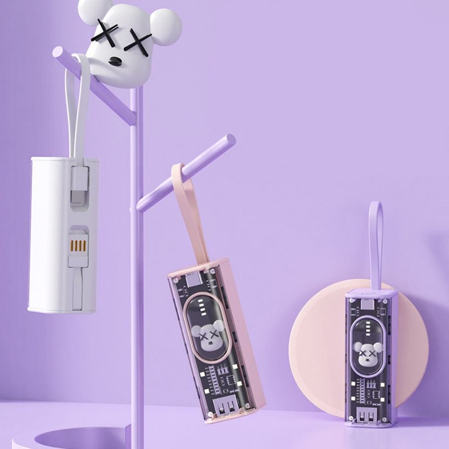 Vente en gros de nouvelle batterie externe transparente mini, design cartoon, 5000 mAh, multifonction, chargeur universel pour téléphone portable