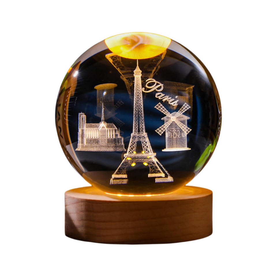 Lampe de nuit LED USB à boule de cristal, nouveau modèle, blanc chaud, avec base en bois, pour chambre à coucher, vente en gros