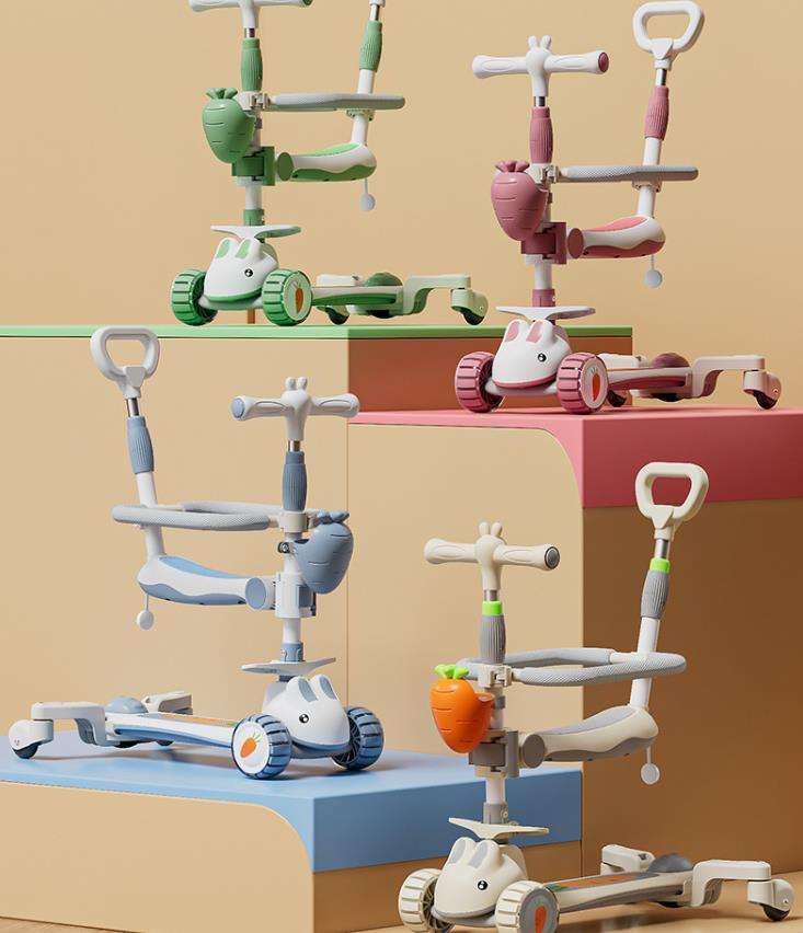 Vente en gros de trottinette à pédales multifonctionnelle pour enfants/trottinette Strooler 3 en 1 pour bébé de 2 à 14 ans avec boîte à carottes