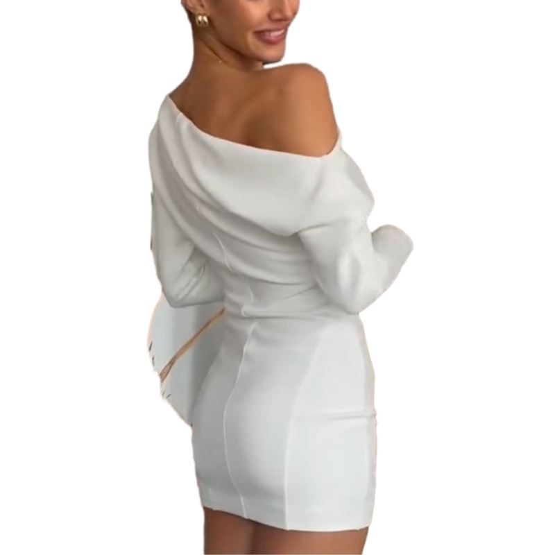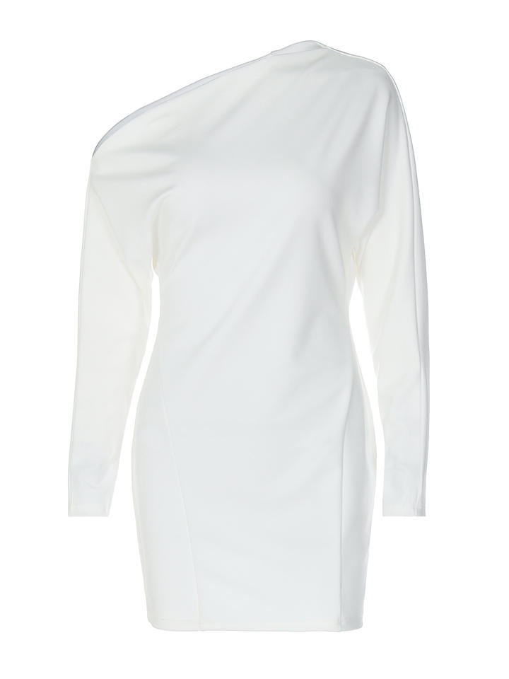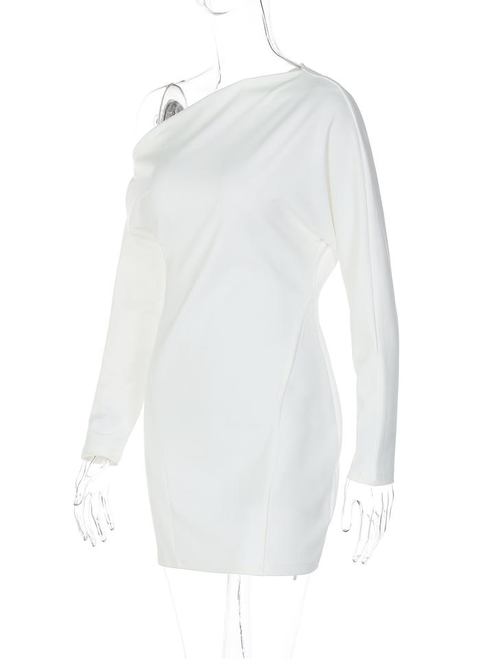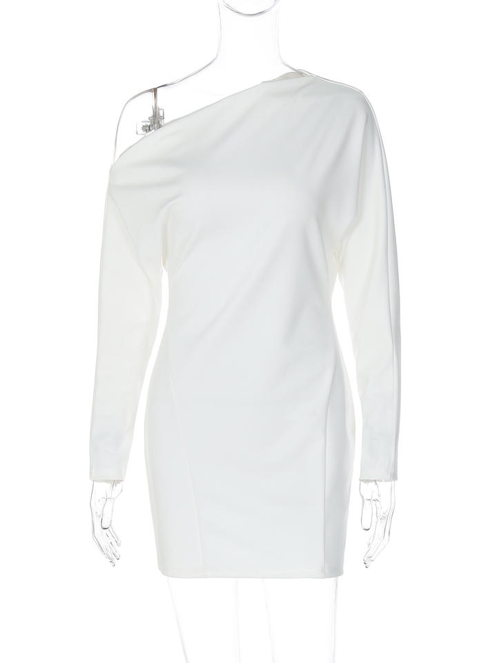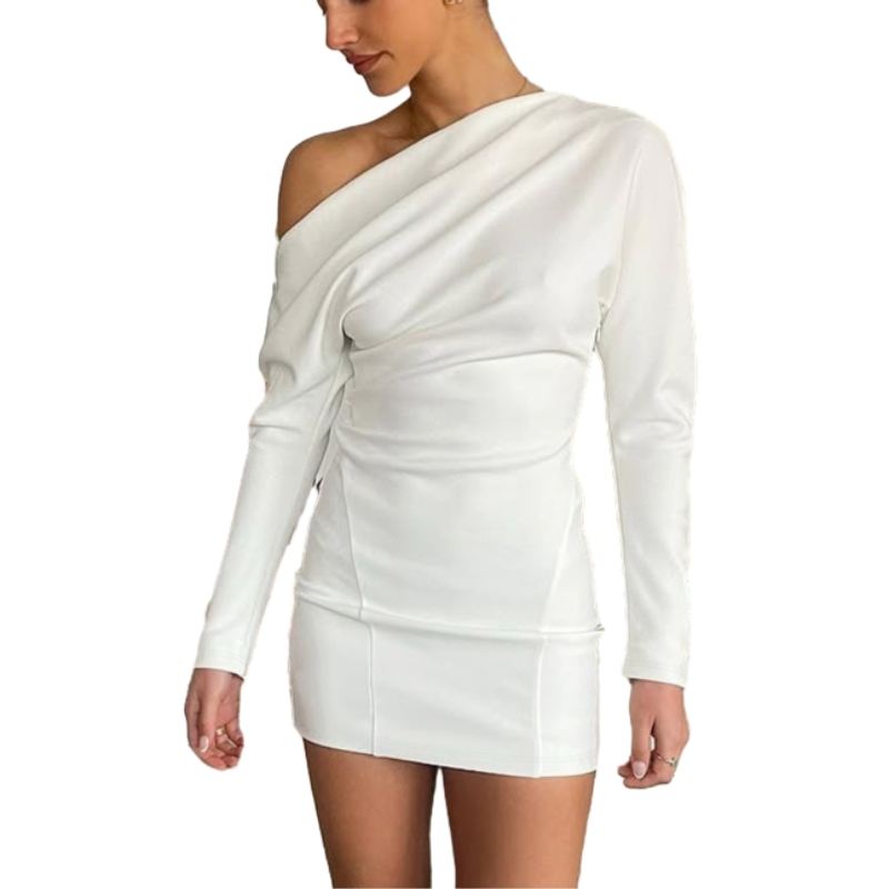 Robe moulante asymétrique à une épaule, couleur unie, froncée, polyvalente, à manches longues, pour femme - Nouvelle collection en gros