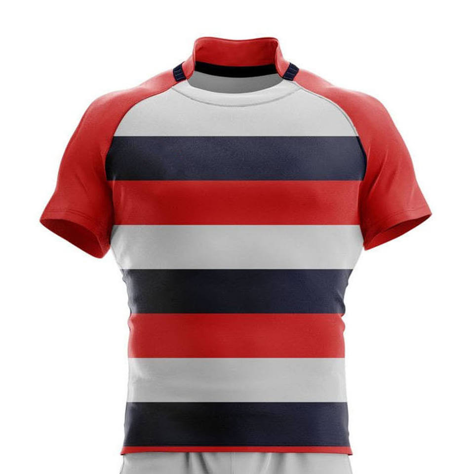 Vente en gros de nouveaux ensembles de maillots de rugby unisexes cousus et sublimés, design imprimé, shorts de qualité, séchage rapide, ensembles de maillots de rugby en solde