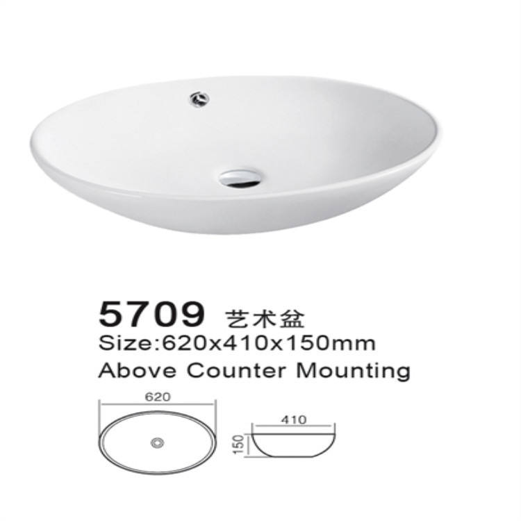 Vente en gros Nouveau lavabo ovale en céramique blanche monobloc sur comptoir avec design marbré pour salle de bain