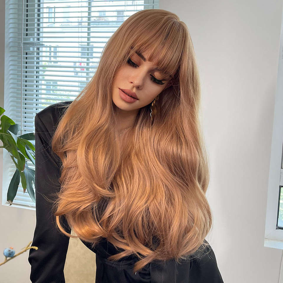 Perruque longue bouclée prête à l'emploi, produit de fabricant avec frange, vendeur de cheveux humains bon marché, perruques ondulées pour femmes, vente en gros