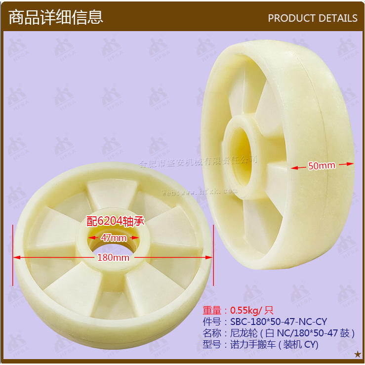 Roue en nylon blanche NC180*50-47 pour tambourmodèle