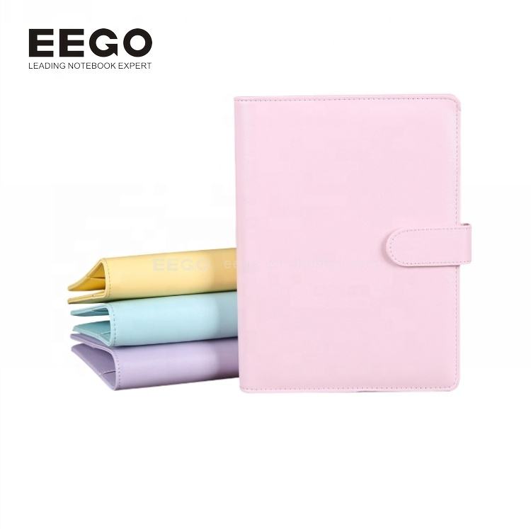 Carnet de notes en gros, agenda à 6 anneaux, classeur de budget A5 A6, couverture en cuir PU Saffiano couleur macaron bonbon