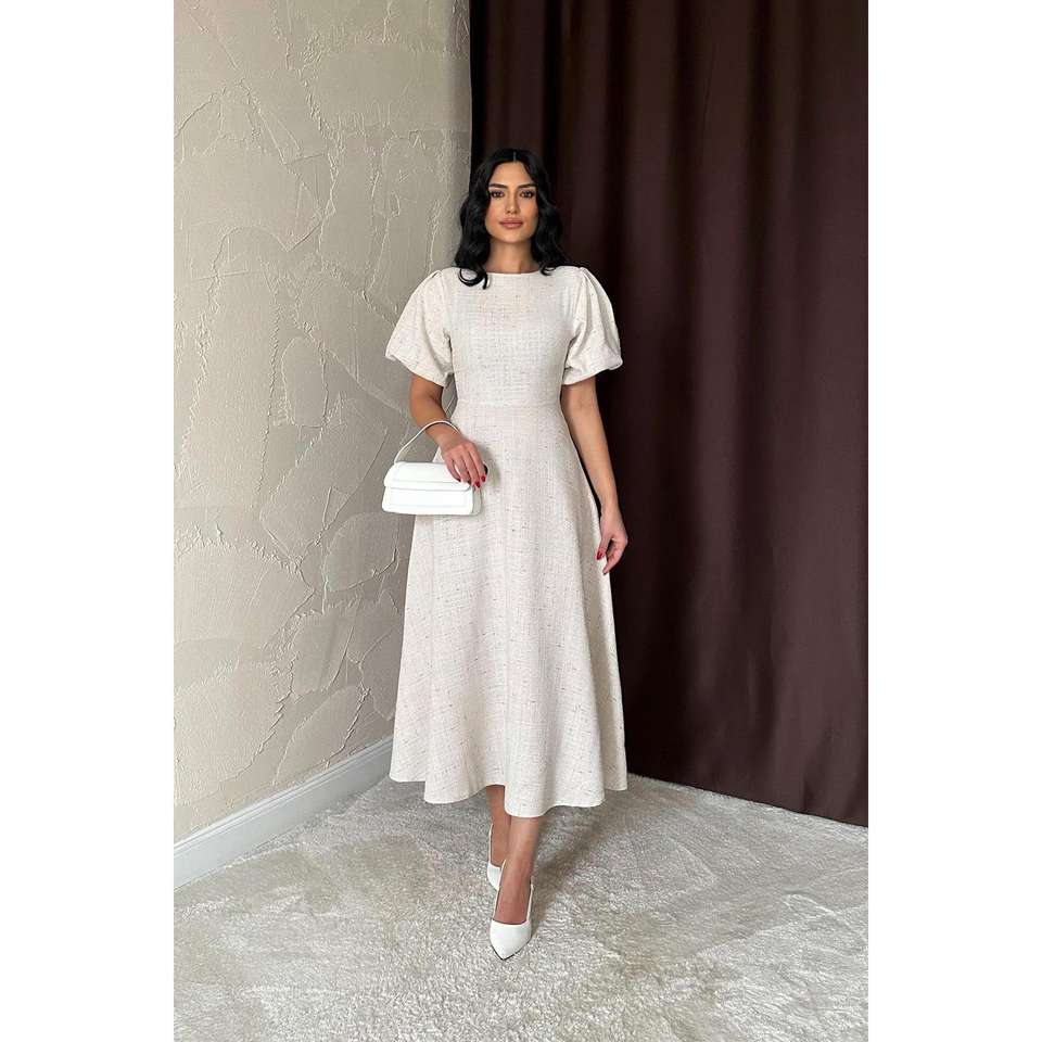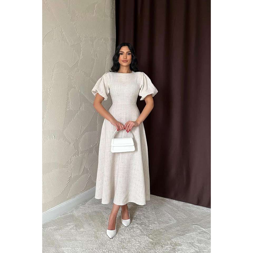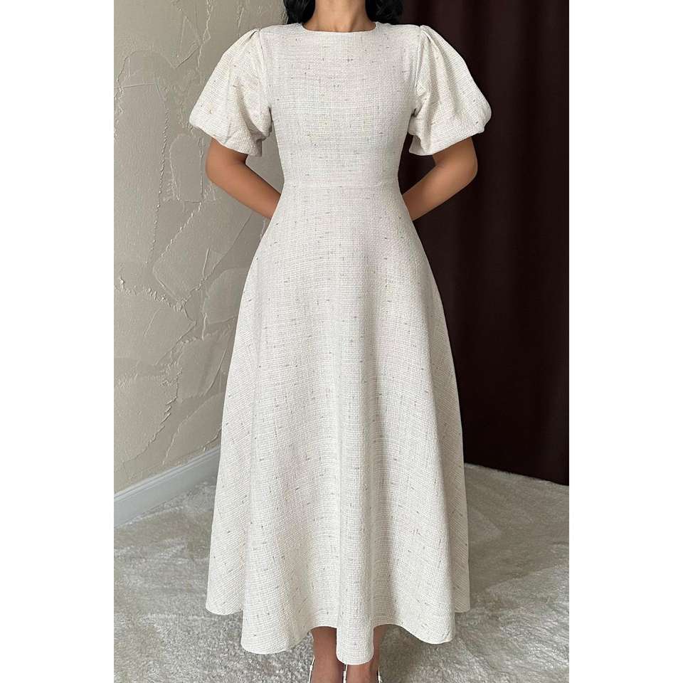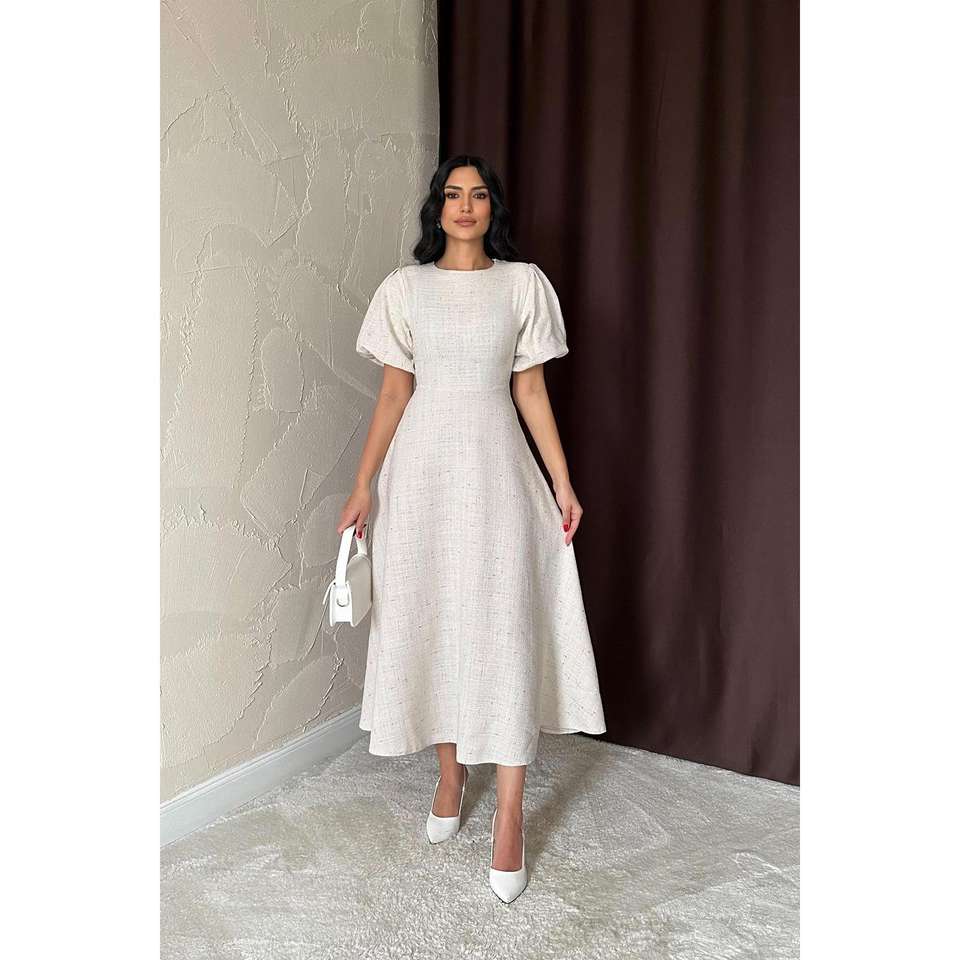 Wholesale ODM Long Ball Gown Dress Beige Balloon Sleeves Embroidered Flowers XL Size Formal Party Style Sequined for Weddings