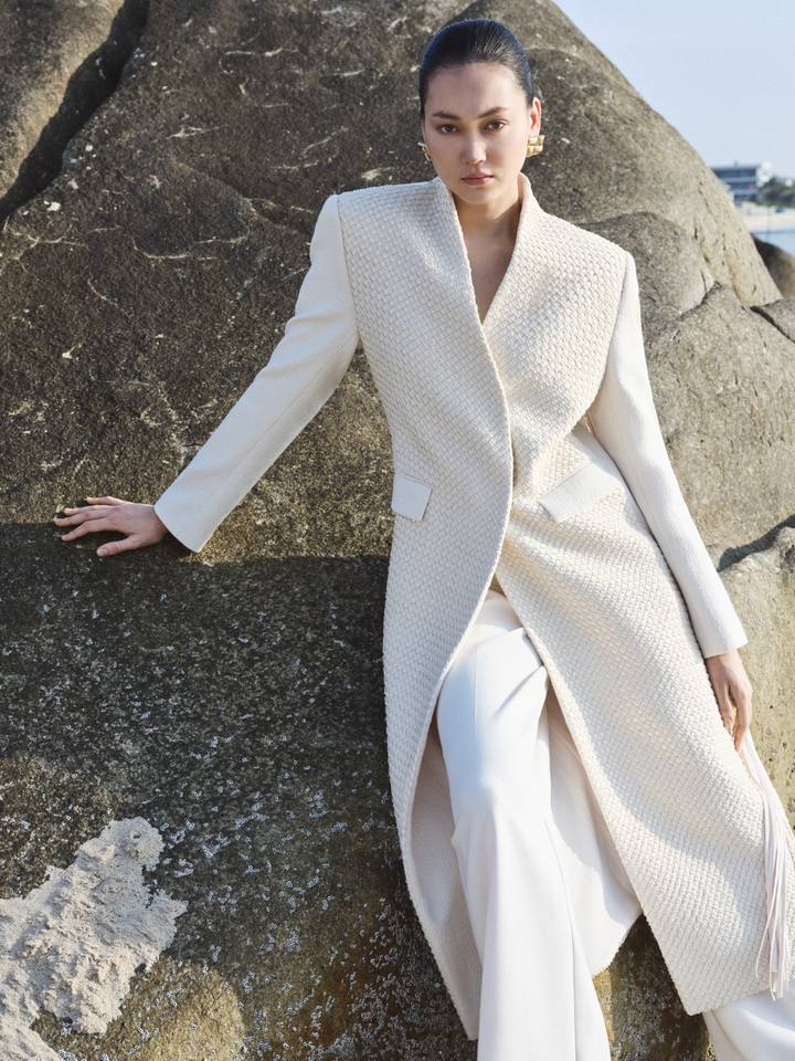 Wholesale ODM Trench Coat Women ELEGANT IVORY Color ELSE FRINGED COAT Rayon Spandex Woven Fabric Women's Coats Vietnam