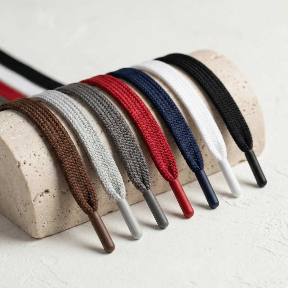 Cordons tressés personnalisés OEM en gros avec logo, plats, 100 % coton, écologiques, avec embout métallique pour sweats à capuche, pantalons et vêtements