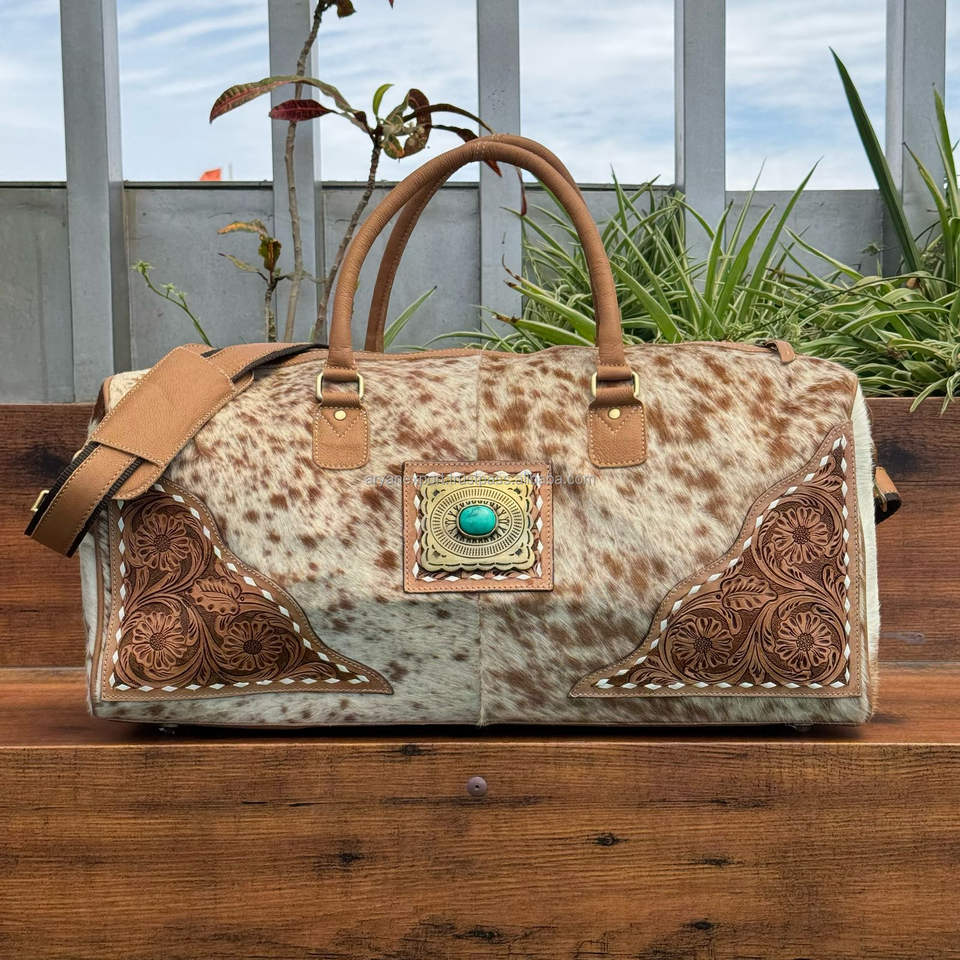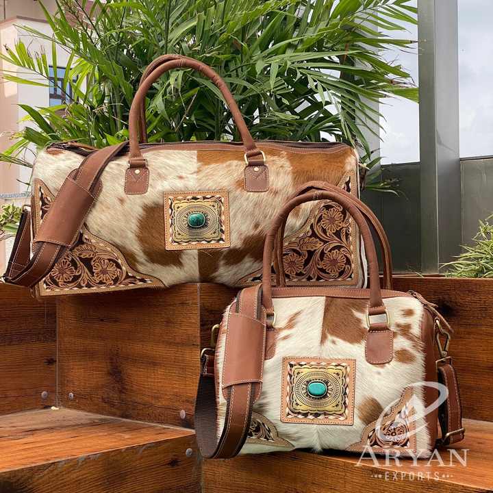 Product name:Tooled Cowhide Leather 2- piece Duffel Set
