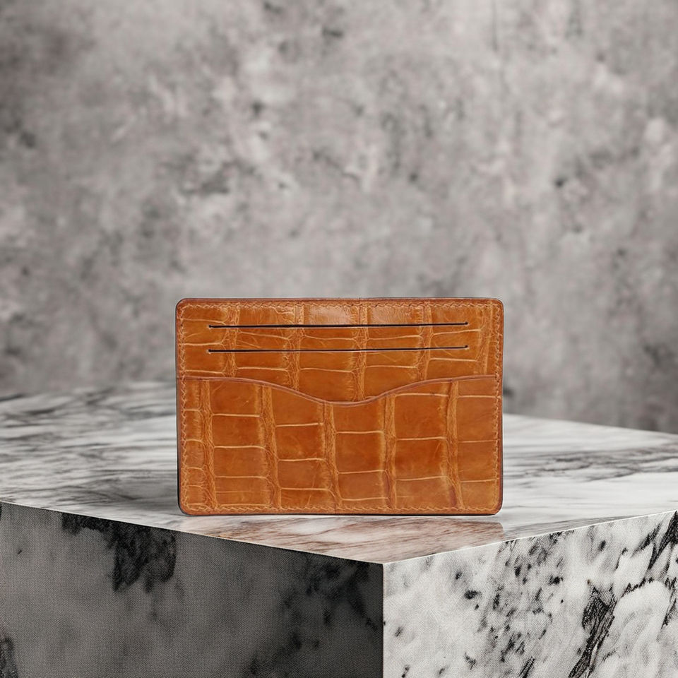 Vente en gros OEM/ODM Porte-cartes en cuir d'alligator/croco pris en charge Portefeuilles en couleurs mélangées Porte-cartes en cuir véritable fait à la main