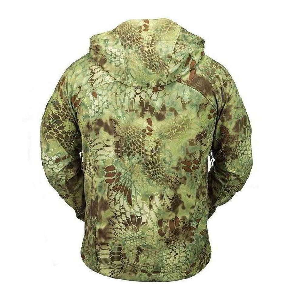Veste de chasse coupe-vent OEM en gros avec impression HD, camouflage personnalisé, en polyester softshell, pour la randonnée et le camping, fabriquée au Pakistan