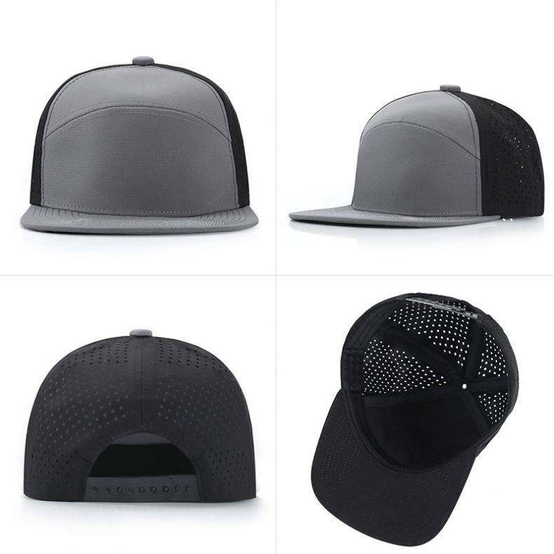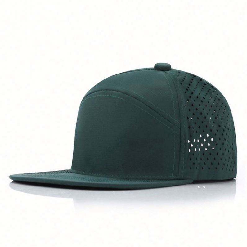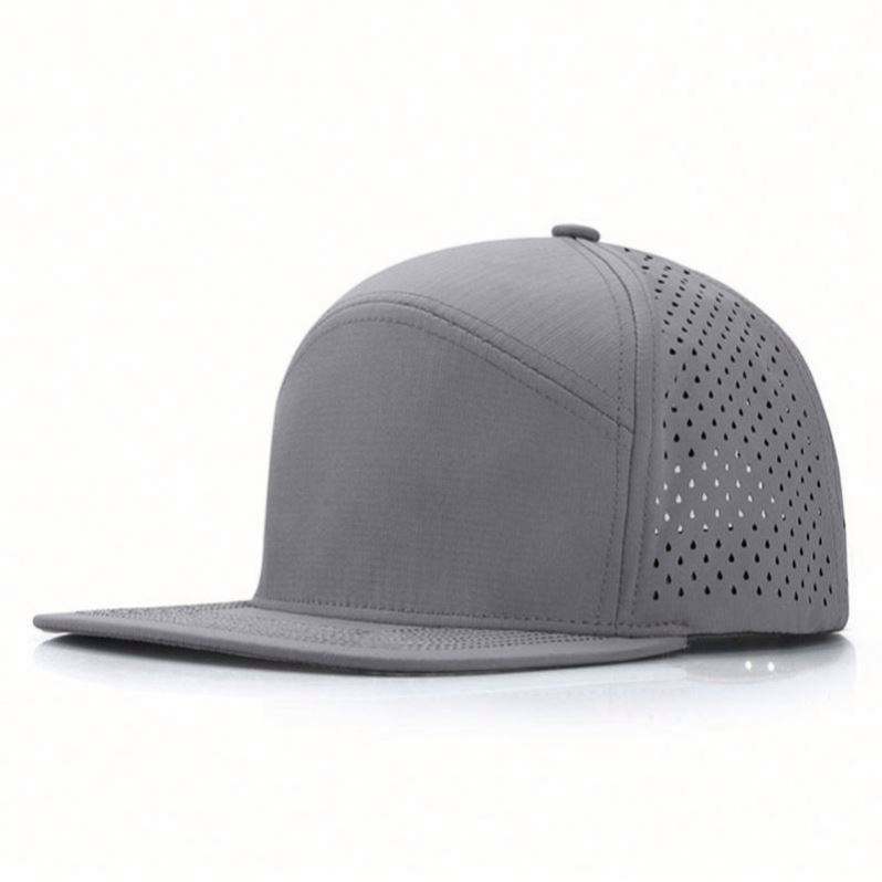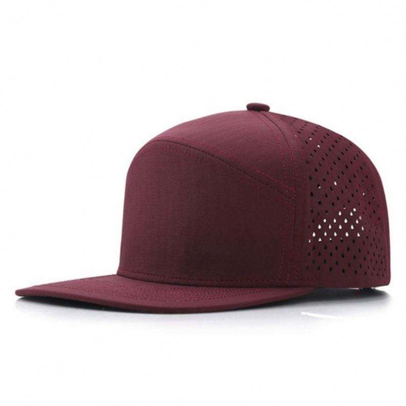 Casquette Snapback Sportive Personnalisée OEM de Haute Qualité à 7 Panneaux avec Logo PVC, Imperméable et Perforée par Découpe Laser