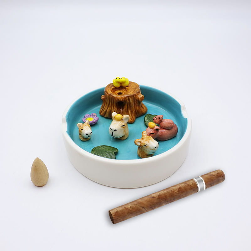 Vente en gros de décoration de bureau cendrier à cigares 3d mignon nouveau design brûleur d'encens à dégorgement cendrier cochon d'Inde en céramique personnalisé