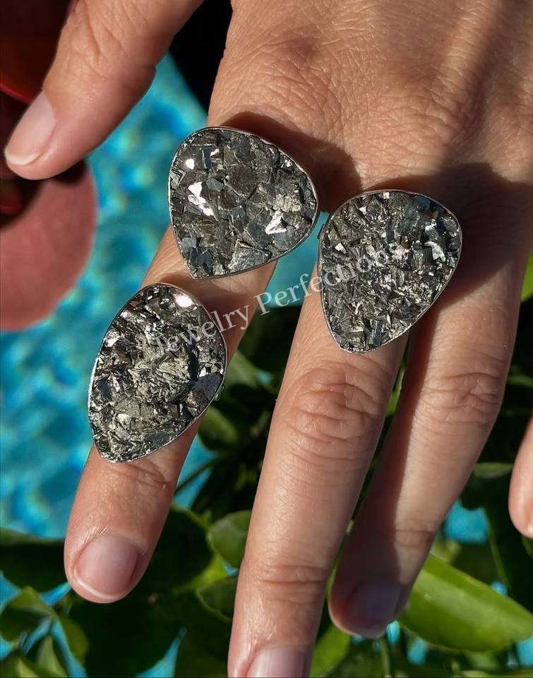 Product name:925 Sterling Silver Pyrite Druzy Ring