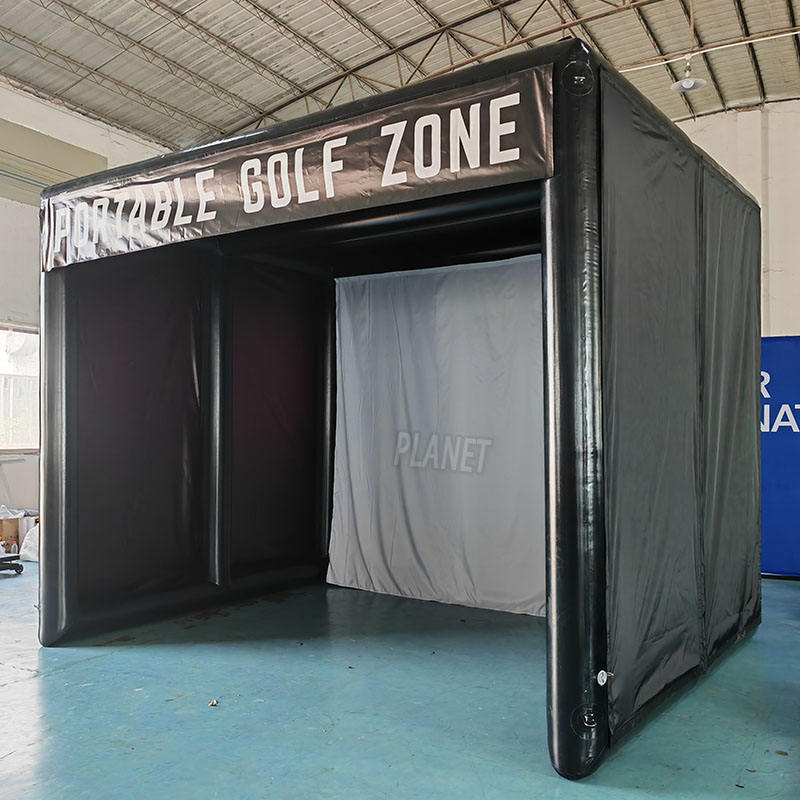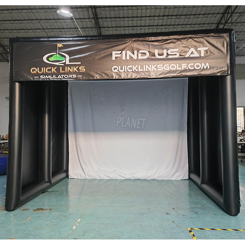 Vente en gros de cage gonflable pour simulateur de golf Tente de simulation de golf noire avec projection pour simulateur
