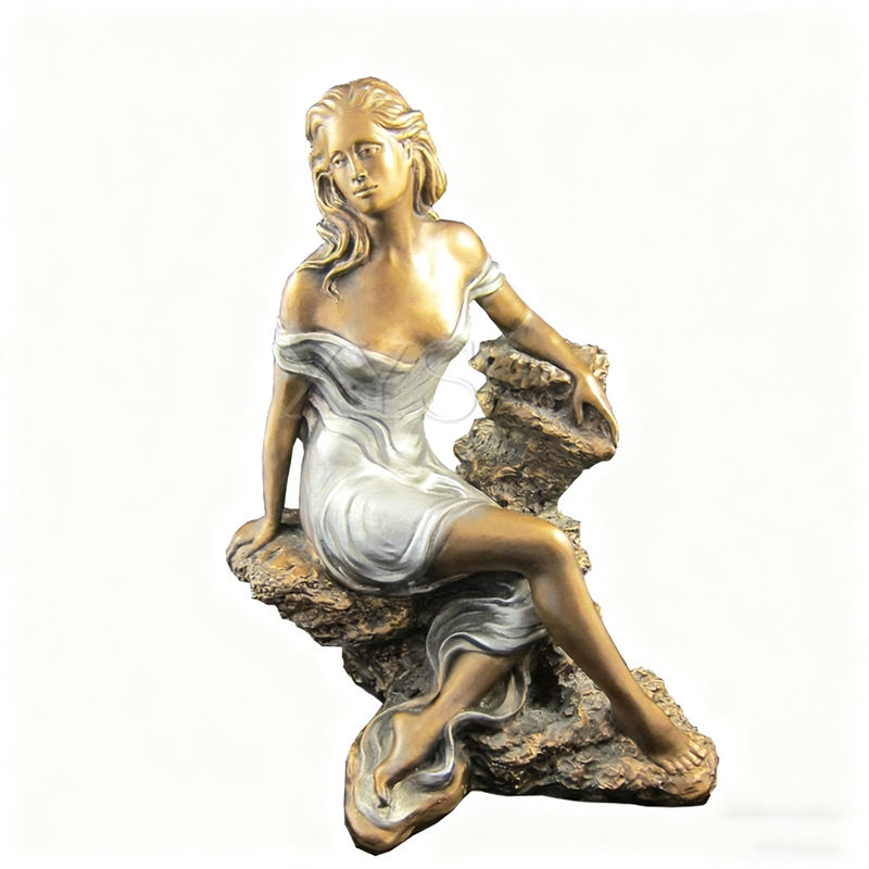 Name:Bronze blonde woman statue, nude woman sitting sculpture