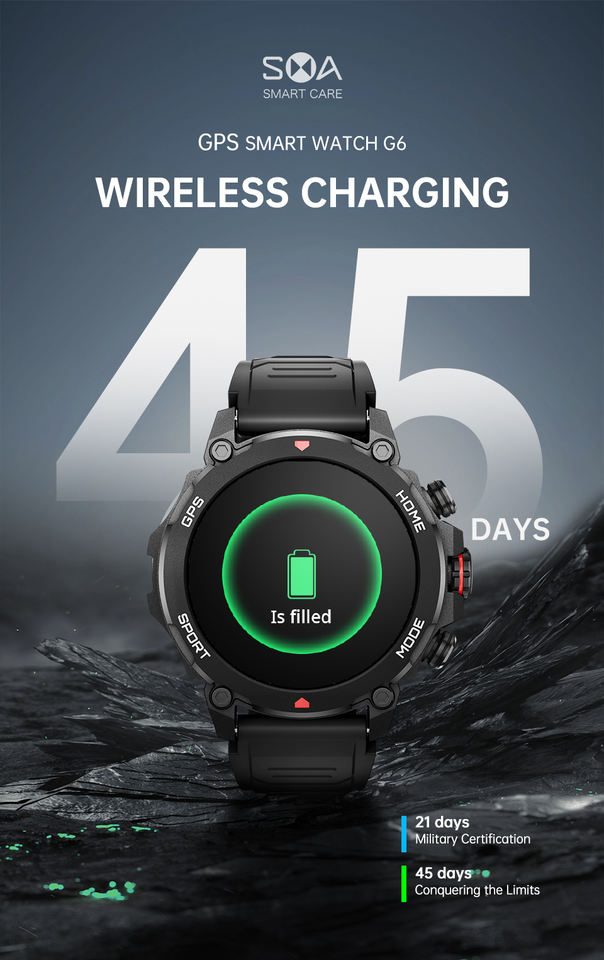 Montre connectée d'extérieur en gros avec GPS, altimètre, boussole, écran HD G6, autonomie prolongée, étanche 5 ATM pour hommes