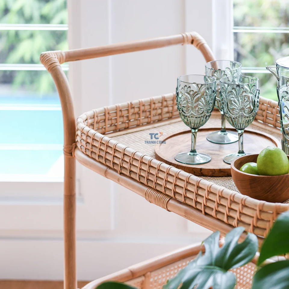 Vente en gros de chariot de bar et de cocktail en rotin ovale avec de belles roues en laiton massif meilleur prix fournisseur du Vietnam