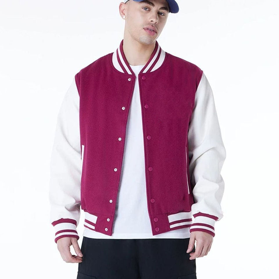 Veste universitaire rose choquant surdimensionnée avec fermeture à boutons et poche intérieure pour hommes, veste de baseball de collège, veste bomber