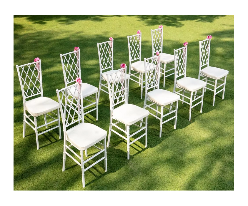 Chaise Chiavari blanche élégante en gros, chaise de salle à manger de luxe, Tiffany en résine, diamant empilable pour hôtels, villas, mariages