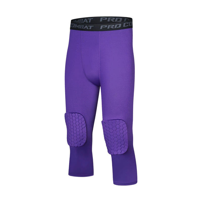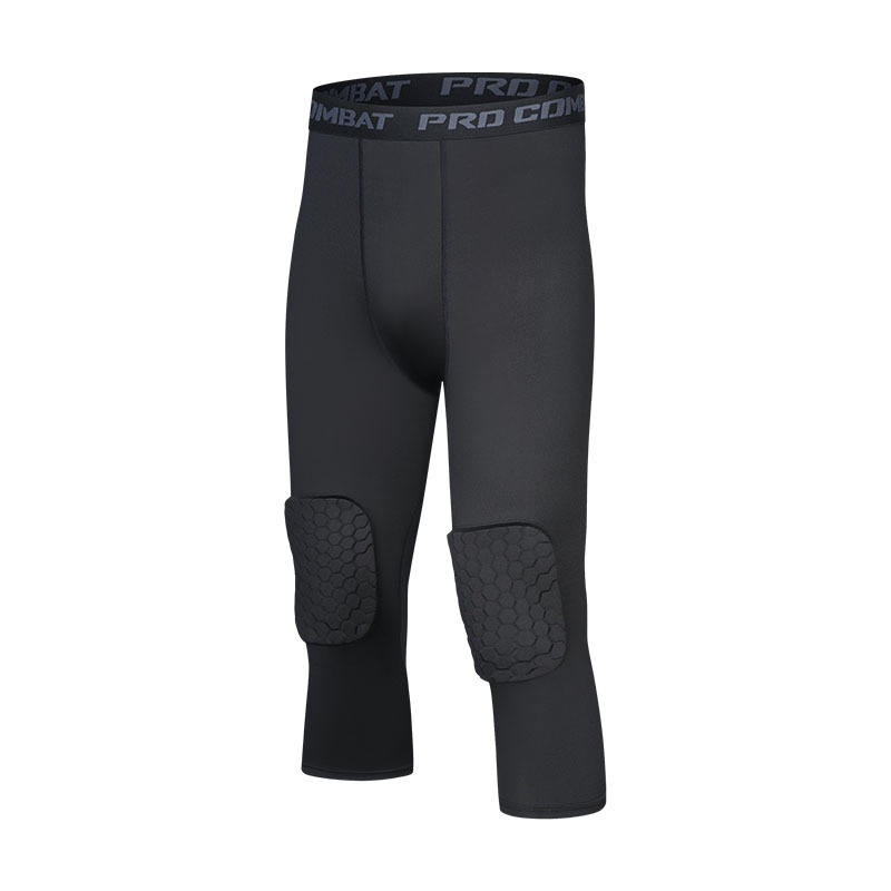 Collants 3/4 pour le basketball, pantalon de compression rembourré avec genouillères en nid d'abeille