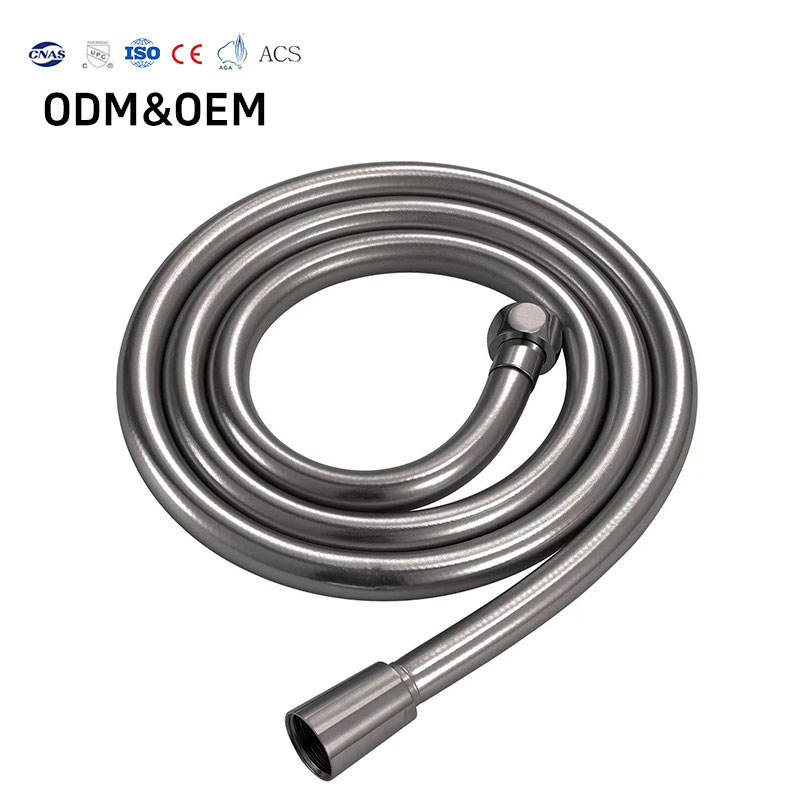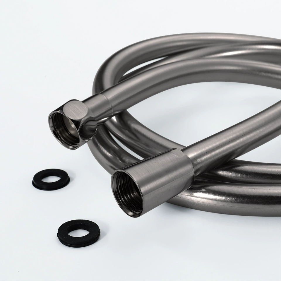 Tuyau de douche flexible en PVC gris argenté avec raccord en laiton pour salle de bain, résistant aux hautes températures, vente en gros